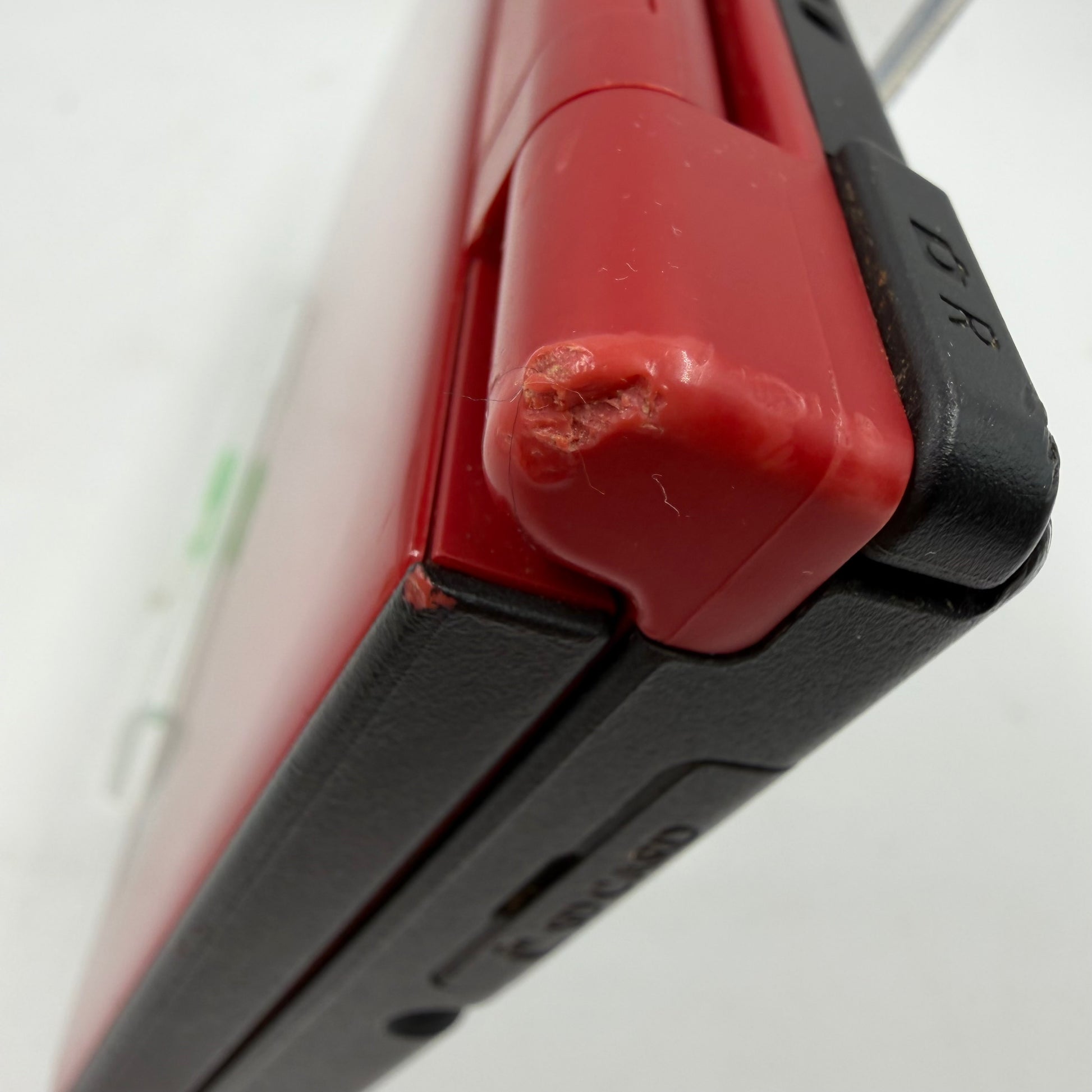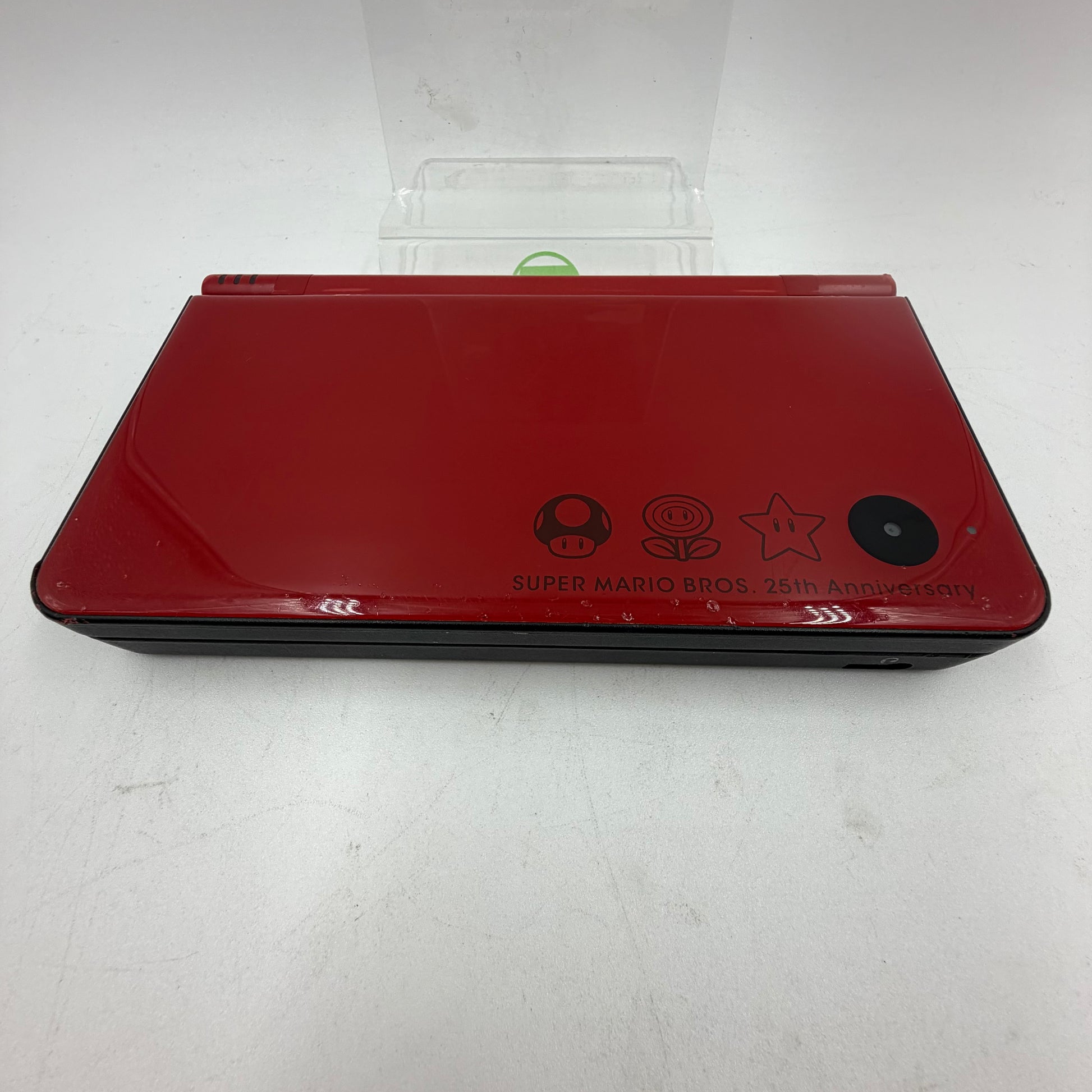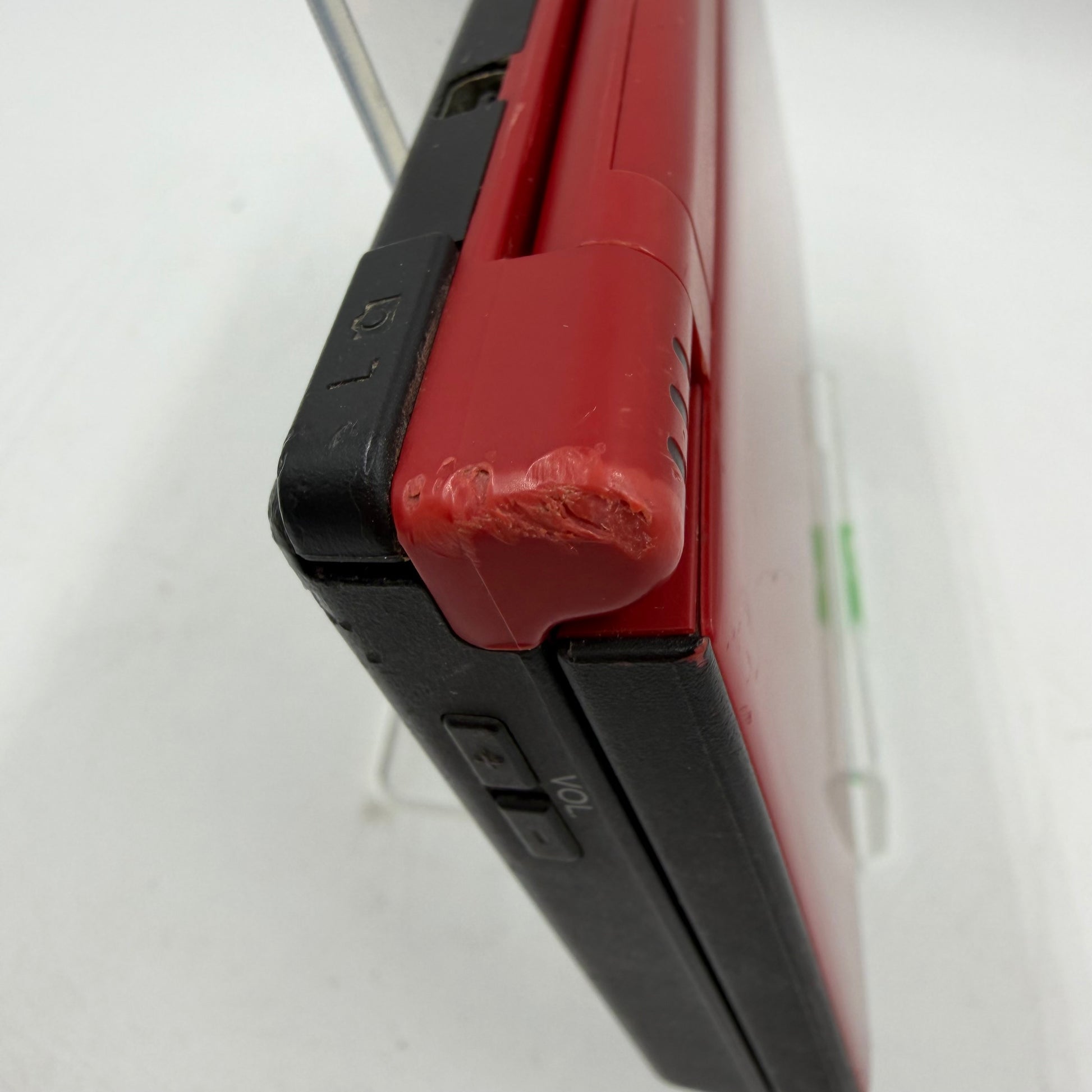 The top display is in good condition with some light, but noticeable, scuffs, scratches, and wear. The bottom display is in good condition with some light, but noticeable, scuffs, scratches, and wear. The buttons have been cleaned and are in good condition. All symbols are legible. The charge port is clean and in great condition. The game cartridge port has been cleaned and is in good condition. The hinge is sturdy and fully functioning. The back/housing shows signs of heavy use due to a good amount of noticeable scuffs, scratches, and wear.
